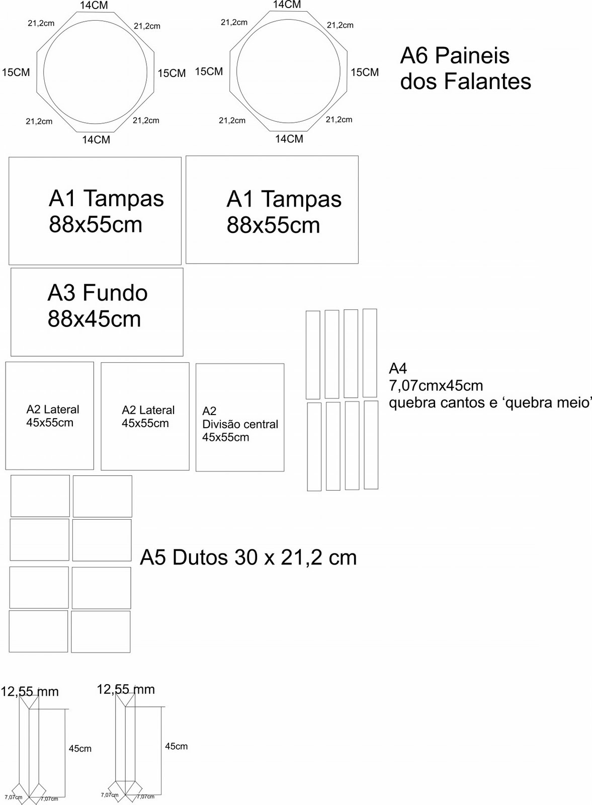 Se nou couber na mala de seu automóvel, não mude nenhuma medida da caixa, isso mudará entre outros fatores a resposta da caixa.